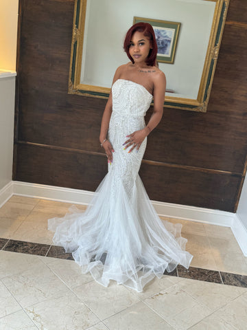 Elegant Mesh Insert Mermaid Hem Sequin Tube Wedding Dress