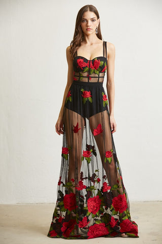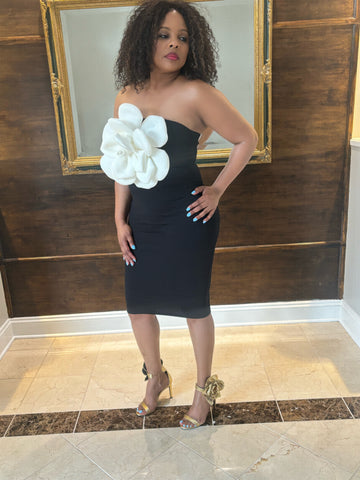3D Flower Tube Bodycon Dress Mesh Layer On Waist