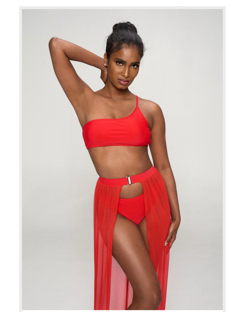 3 piece bikini set. Mesh skirt with 2 piece bikini.