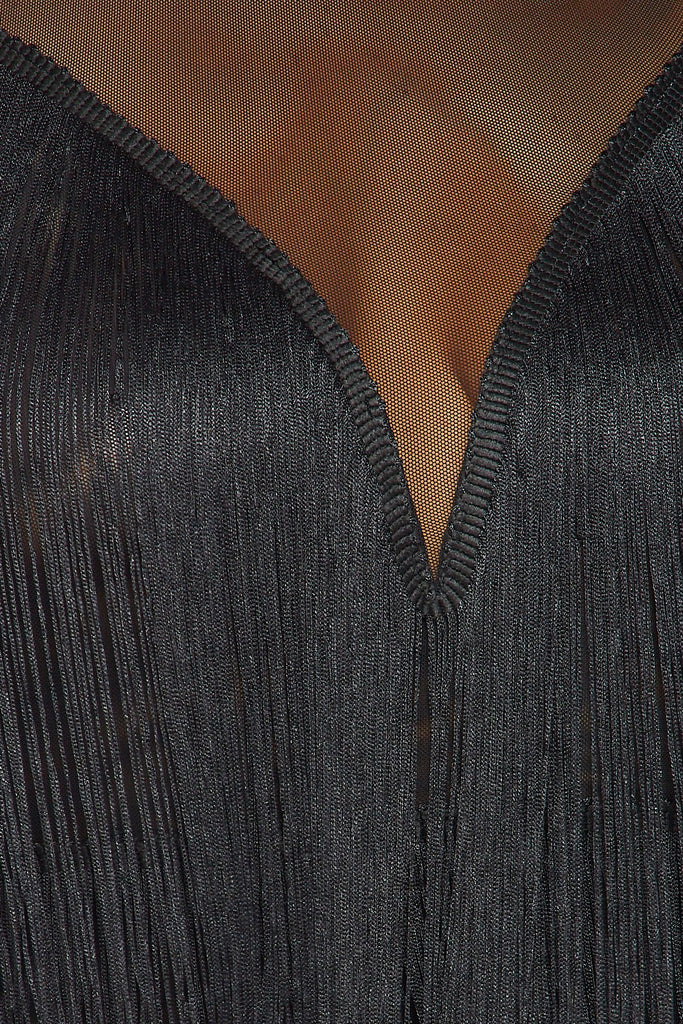 After Dark Fringe Tier and Mesh Midi Dress